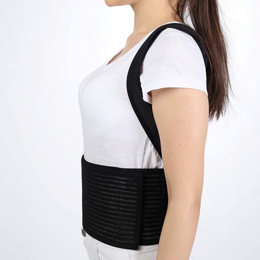изготовлен из неопреновой ткани. С обеих сторон имеет 2 ребра жесткости. Гибкие плечевые лямки проходят под мышками, перекрещиваются сзади и соединяются на липучках спереди для обеспечения устойчивой поддержки, что в свою очередь предотвращает нарушение осанки. Его можно легко носить под одеждой. Вы можете регулировать степень отвода плеча, потянув вверх и ослабив застежку.