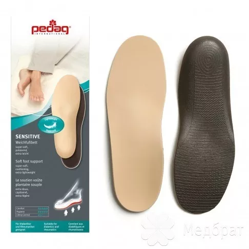 - Очень легкая и очень мягкая стелька PEDAG Sensitive - мягкая поддержка стопы, предназначена для особо чувствительных ног;