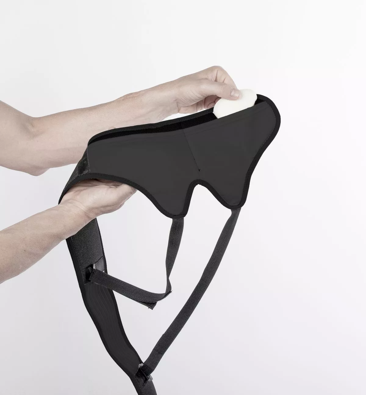 - Поместите одну или обе пелоты в карман и расположите их напротив паховых складок.