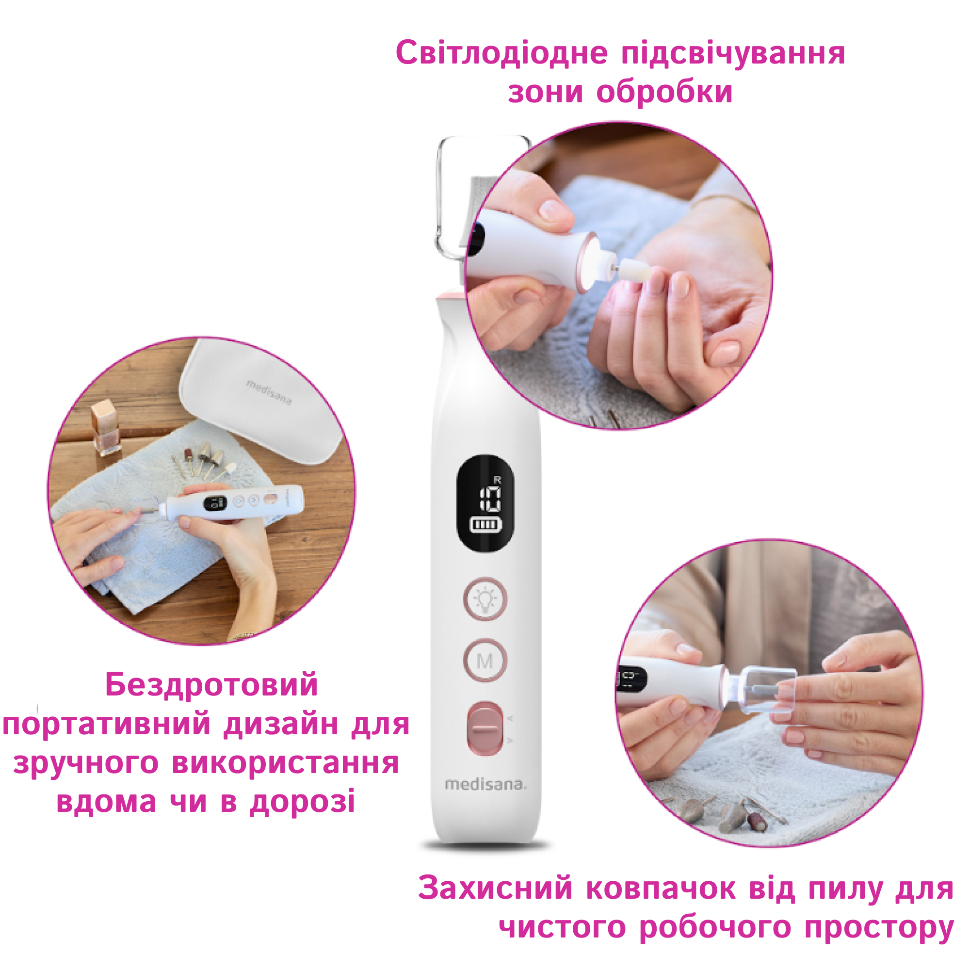 Medisana MP 940 - это идеальный набор для профессионального маникюра и педикюра, который подходит для использования дома или в путешествиях. С его помощью можно эффективно ухаживать за ногтями рук и ног, обрабатывать кутикулу и даже удалять натоптыши. Беспроводной дизайн и компактные размеры делают этот прибор особенно удобным для использования в любых условиях.