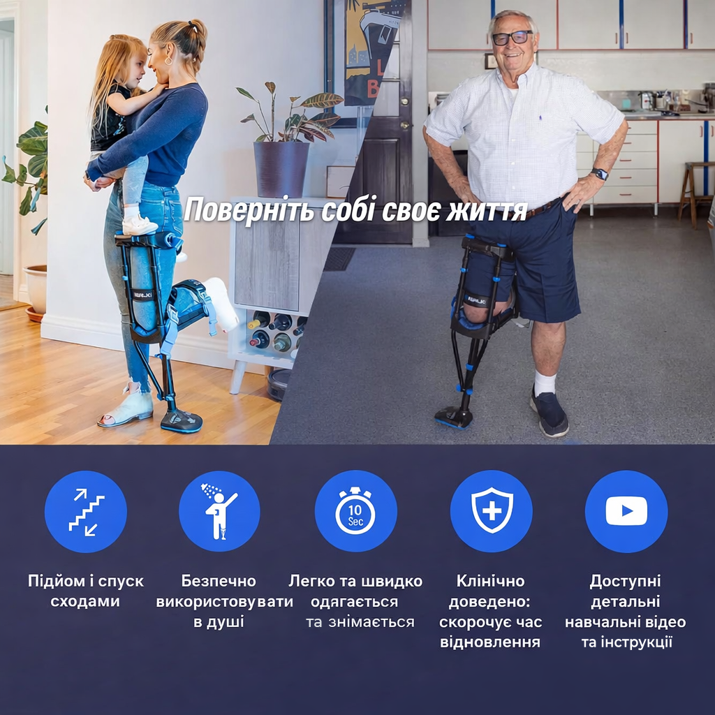 Превосходная альтернатива обычным костылям и ходункам, обеспечивающая комфорт, безопасность и независимость во время восстановления после травм нижних конечностей.