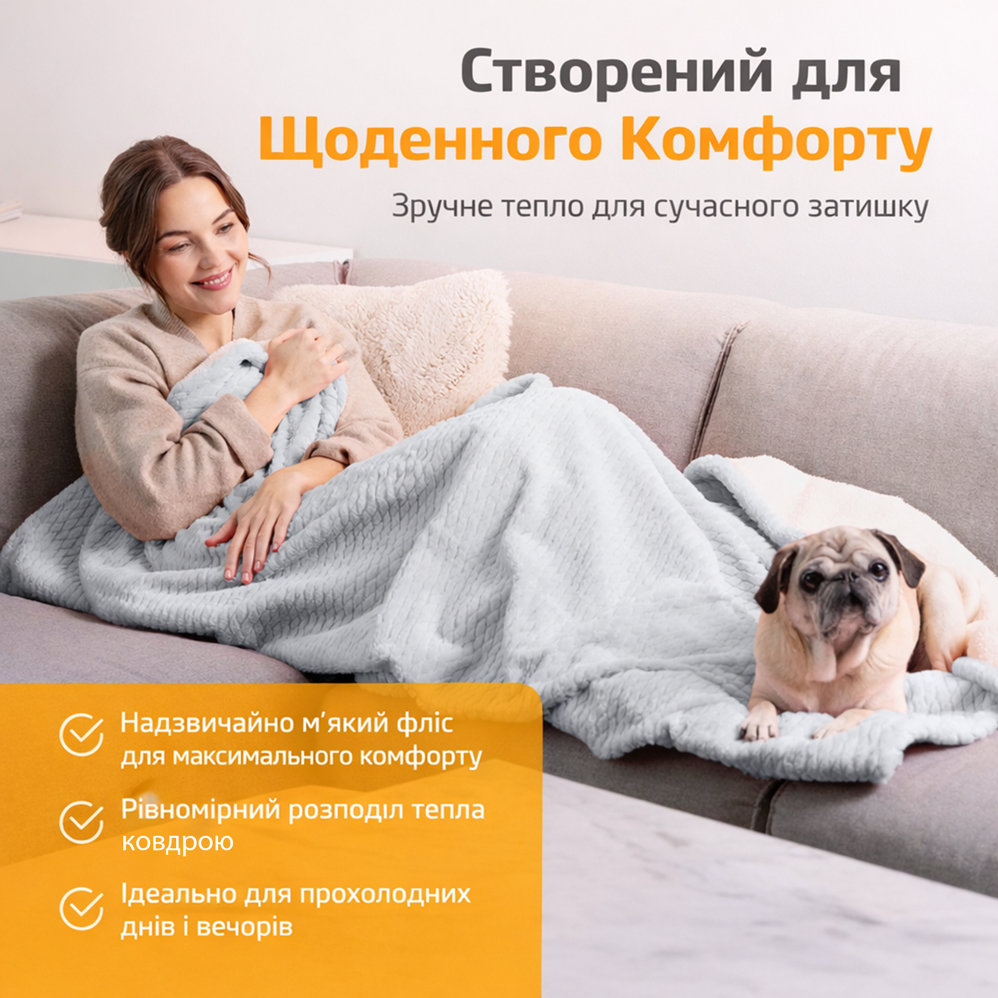 Мягкое электрическое одеяло с девятью уровнями нагрева для комфортного и безопасного согревания дома.