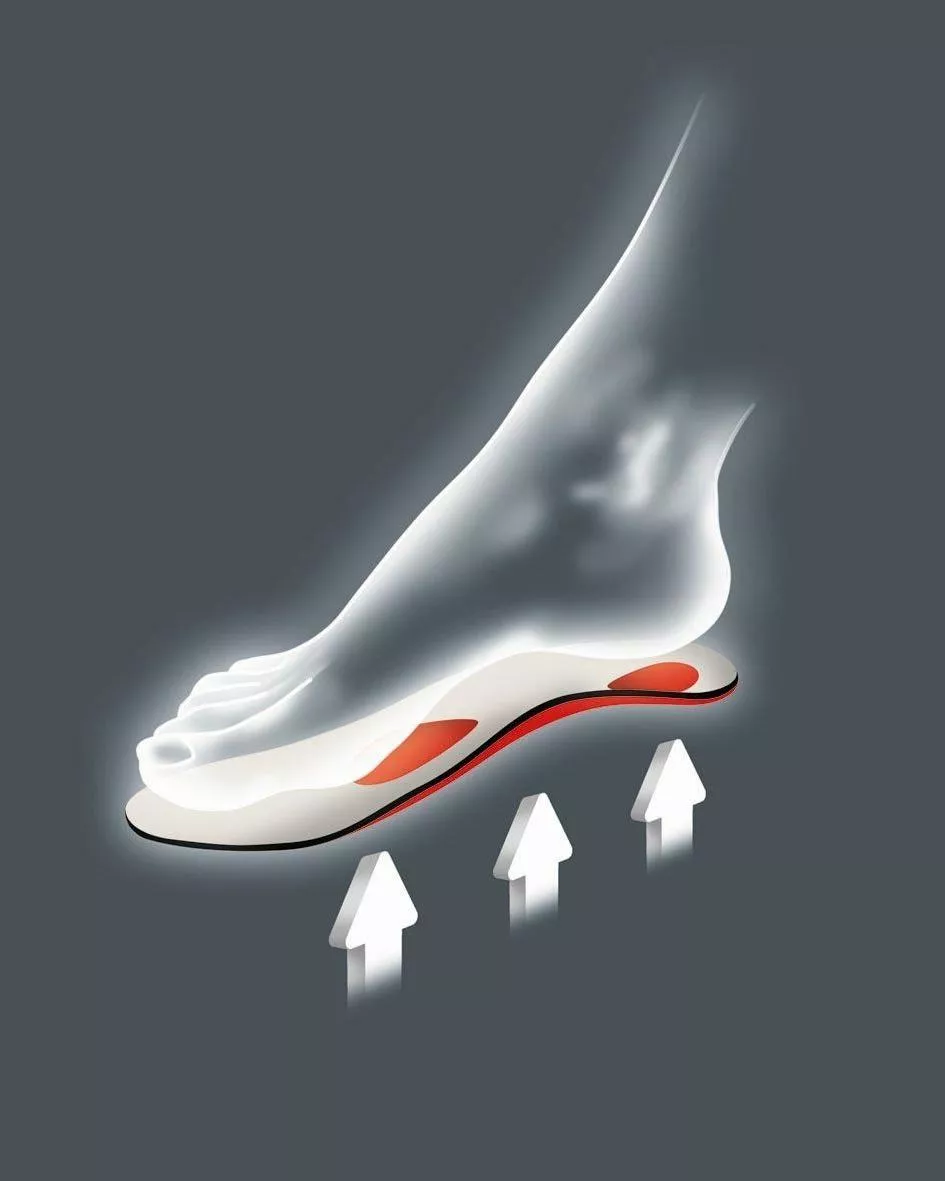 Надійну підтримку поздовжнього та поперечного склепінь стопи забезпечує міцний пластиковий каркас анатомічної форми та вбудований пелот. Покриття з матеріалу на основі високотехнологічних волокон надзвичайно міцне та довговічне, має чудові абсорбувальні властивості, допомагає зберегти сухість ніг. Прошарок з активованого вугілля ефективно запобігає неприємному запаху. Таке поєднання матеріалів гарантує підтримку оптимального мікроклімату у вашому взутті.