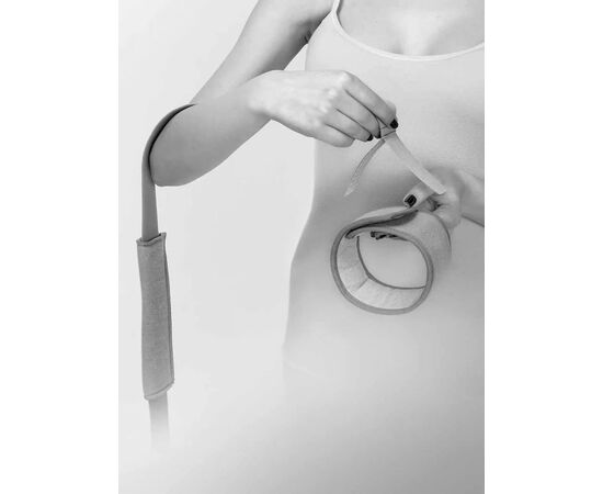 4. Протягніть плечовий бандаж через пряжку на браслеті та зафіксуйте його, приклеївши до себе на необхідну довжину.