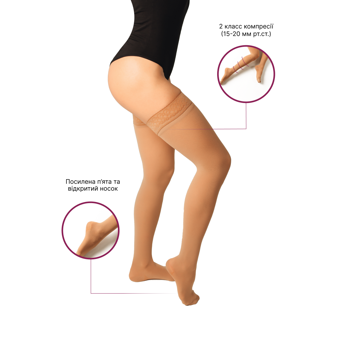 Панчохи компресійні медичні 2 клас із відкритим носком (бежевий) стандартні Microtrande Мікрофібра XS