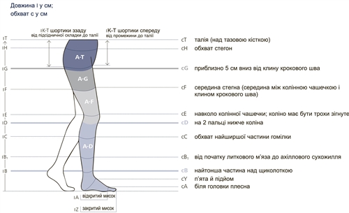 Знімайте мірки зранку, коли ноги ще не набрякли. Для вимірювання потрібно оголити ногу, не можна міряти через одяг.