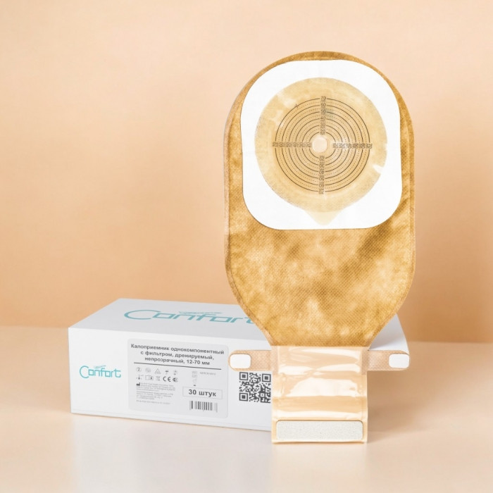Калоприймач однокомпонентний (відкритий, непрозорий) 12-70 мм, з фільтром (30 шт./пакт) Confort Туреччина
