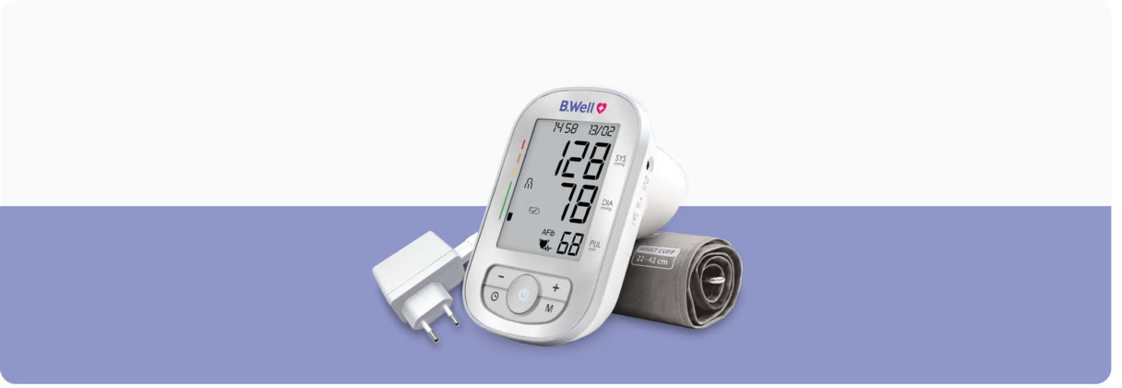 B.Well TH-75 — сучасний автоматичний тонометр для точного вимірювання АТ і виявлення фібриляції передсердь (AFib). Раннє виявлення фібриляції дає змогу своєчасно звернутися за медичною допомогою, запобігаючи важким ускладненням. Тонометр поєднує точність, зручність та інноваційні функції, ідеально підходить для домашнього користування. Завдяки анатомічній манжеті (22-42 см) і зручному керуванню, підходить для всієї родини. Пам'ять на 2 користувачів та індикація правильного використання роблять його надійним і простим у використанні. Режим 3CHECK виконує три послідовні вимірювання з інтелектуальним аналізом для максимальної точності.