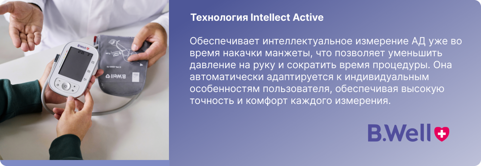 Вимірювання тиску з B.Well буде комфортним: анатомічна форма дає змогу уникнути зайвого стиснення руки. Манжета підходить для окружності руки 22-42 см.